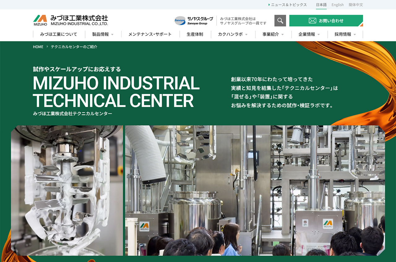 みづほ工業株式会社 コーポレートサイト(日・英)